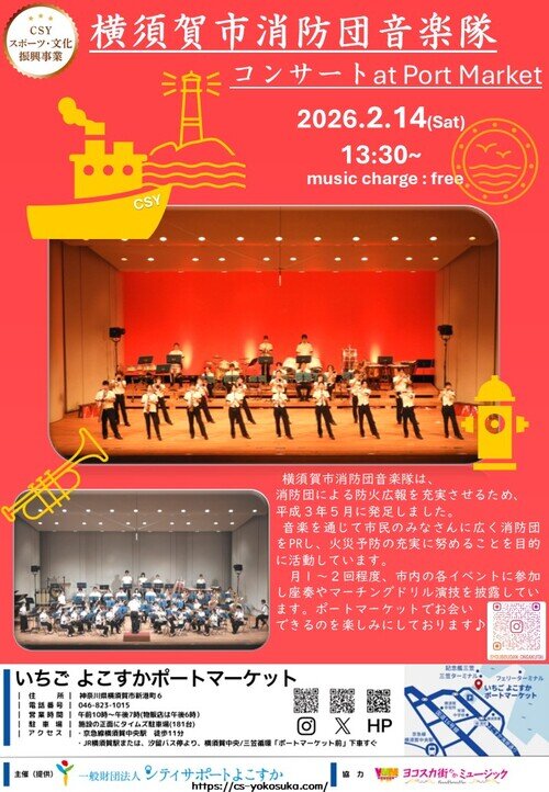 よこすかポートマーケットにて、横須賀市消防団音楽隊コンサートを開催します。